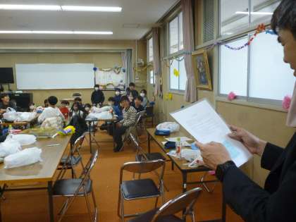 2択クイズは職員も参加しました。担任も参加しての演奏がありました。最後に1年生と3年生の時の担任であった教頭先生からメッセージがありました。