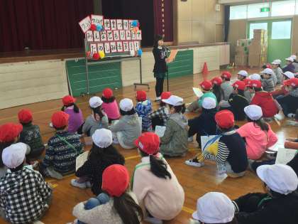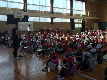 子どもたちが一番楽しみにしているのが、光まつりです。各クラスでお店をつくり、お店の人になったり、お客さんになったりして、全校で活動します。まず、開会式をして、お店めぐりがはじまりました。