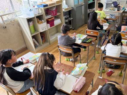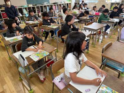 7×6の計算を九九のひょうを使って考えていきます。みんな集中して学習しています。