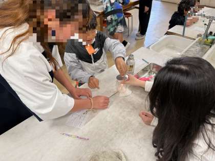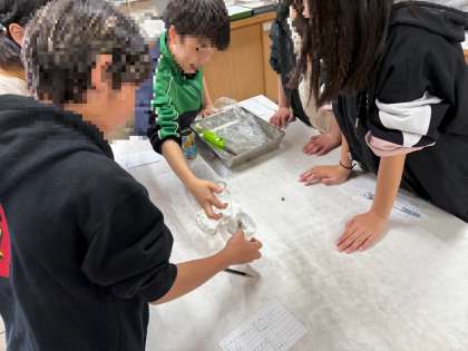 上下に穴のあいた集気びんをを使い、ろうそくに火をつけたときの、線香の煙の動きで調べます。
