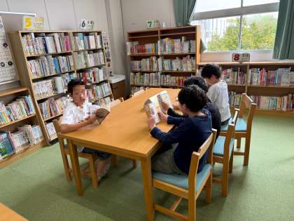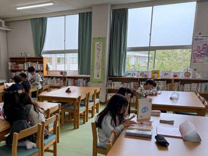 金曜日は、図書館補助員の方がいるので、休み時間は図書館開放があります。図書委員が案内の放送をしてくれました。