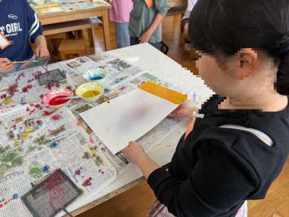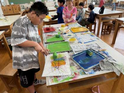 いろいろな道具を使い、できるもようを楽しんでいます。