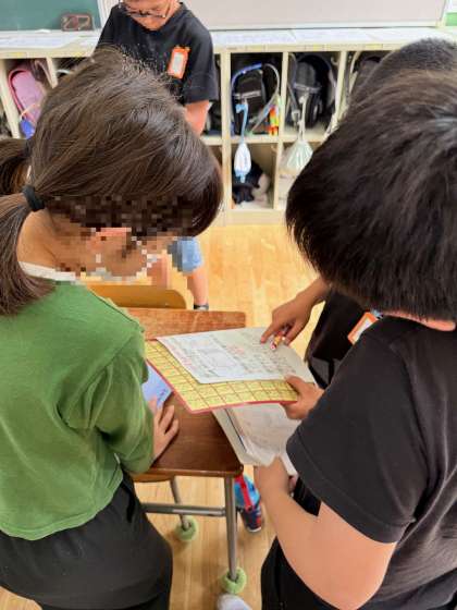 まず、求める方法を前の時間までの学習を振り返りながら、各自で考えます。そして、ほかの人と考えを交流します。