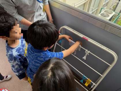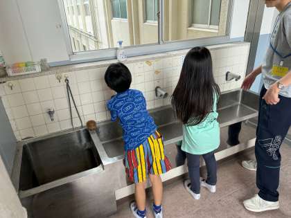 ぞうきんかけにほします。さいごにてをあらいます。