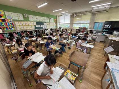 国語辞典を使って、意味調べです。「ささえる」という言葉をさがしています。
