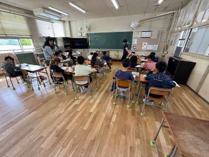 筆算のしかたをみんなで考えています。前時までの学習をふりかえりながら進めています。