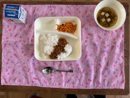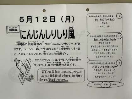 きょうのこんだては、たこらいす・とうふともずくのとろりじる・にんじんしりしりふうです。にんじんしりしりふうはしんこんだてで、こどもにもたべやすかったです。
