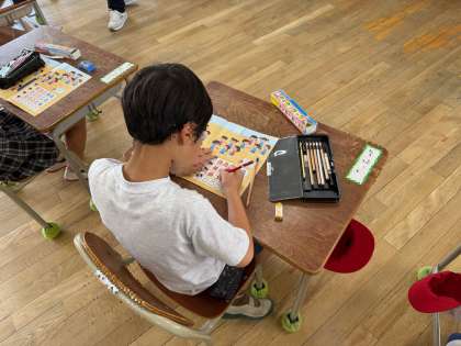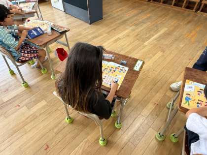 「5」についてかんがえています。「5」がいくといくつにわけられるか、ずをみながらかんがえています。