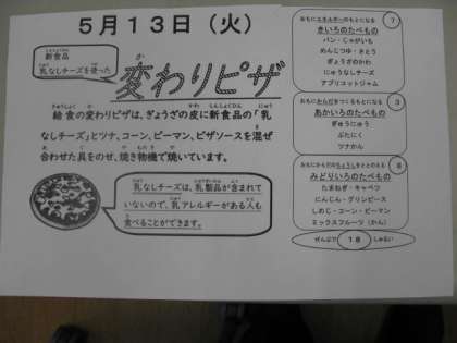 かわりピザには、ピザソースと新食品の「乳なしチーズ」が使われていて、はっきりとしたおいしい味になっていました。