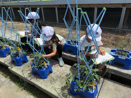 ミニトマト。大きく成長しています。色・においなどいろいろかんさつしています。