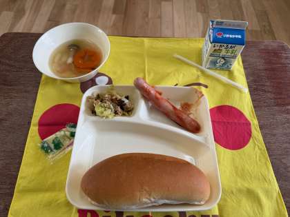 きょうのこんだては、ういんなーのけちゃっぷそーす・すーぷ・やきつなきゃべつです。