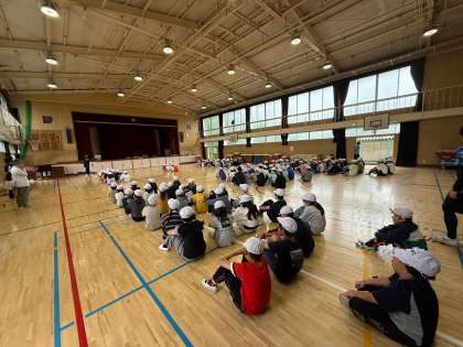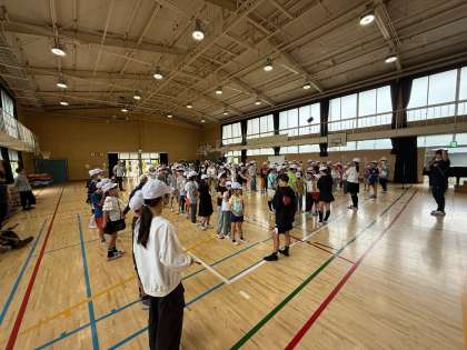 今日の集会は、たてわり集会です。6月から始まるたてわり清掃に向けて活動を始めます。また、同じ6月にある光まつりもたてわりグループでお店をまわります。今日は、はじめての顔合わせです。