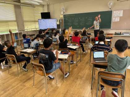 少人数に分かれて学習しています。ちょうど同じところを学習しています。
