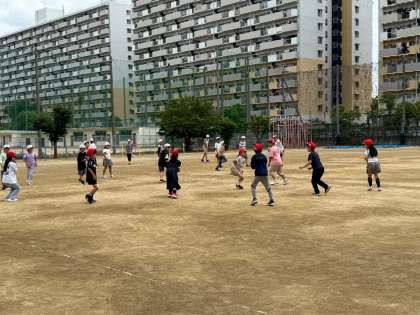 雨がふりそうな予報でしたが、なんとかもっています。子どもたちは元気に遊んでいます。