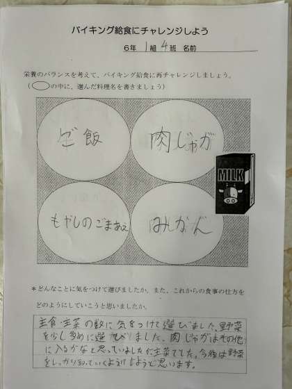 主食・主菜・副菜の、バランスのとれたこんだてを考えることができました。