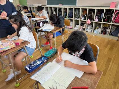 範読を聞き、初発の感想を書いています。