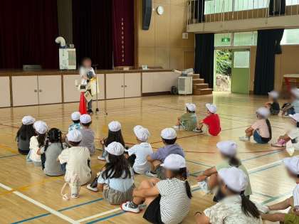 熱中症にならないために、気をつけることを、子どもたちに話しました。