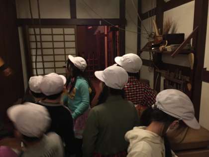 3年生は、大阪くらしの今昔館に社会見学に行きました。はじめは、昔の道具を見せていただきながら学習を行いました。そして、江戸時代にタイムスリップした町並みを歩いて回りました。当時の薄暗さも再現されていて、楽しそうでした。