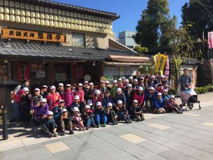 扇町公園でお弁当を食べたあと遊具で遊び、日本一長い天神橋筋商店街を歩いて大阪天満宮まで行きました。