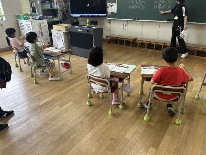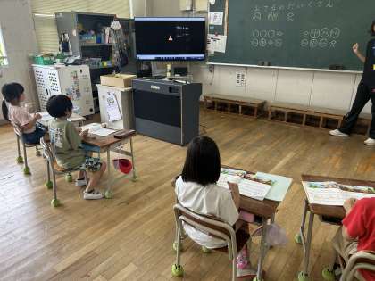 1年生は、歌のリズムに合わせて手拍子を打つ、リズム打ちをしました。真剣に聴いてリズムをとっていました。