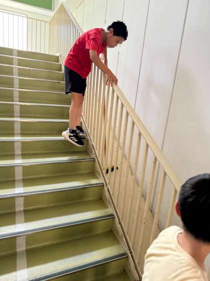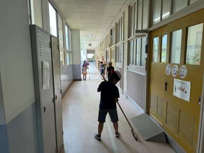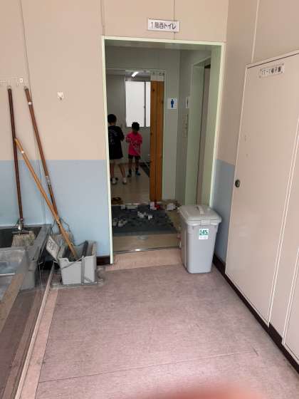 今日はたてわり清掃です。暑い中、子どもたちは協力して、がんばっています。