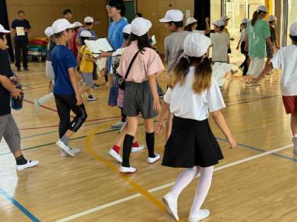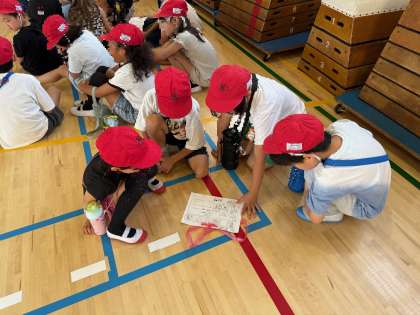 まず、各学年が前半・後半に分かれます。そして、1・6年、2・5年、3・4年のたてわりグループに分かれます。