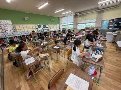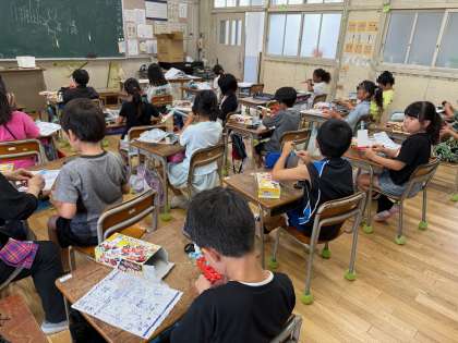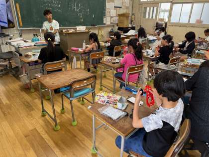 風のはたらきについてしらべます。まずは、風の力で動く車を作ります。