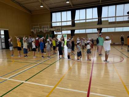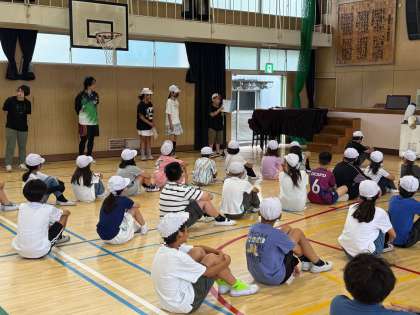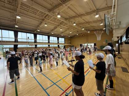 今日の集会は、たてわりで集まりました。6年生がリーダーになり、班を並ばせてくれています。集会の内ようは、スリーヒントクイズでした。楽しいクイズでした。