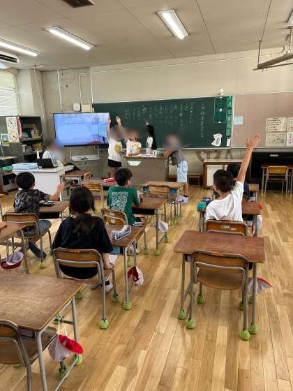 放送委員会では、給食の時間に放送する「先生クイズ」に向けて準備をしていました。