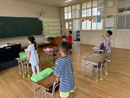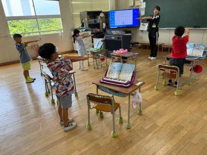 つぎに、どれみにあわせてからだをすこしずつうごかしています。