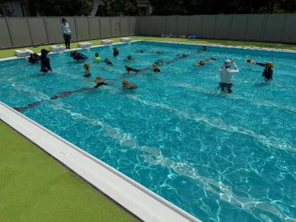 7月8日(火) 学習のようす 1・2年 プール水えい