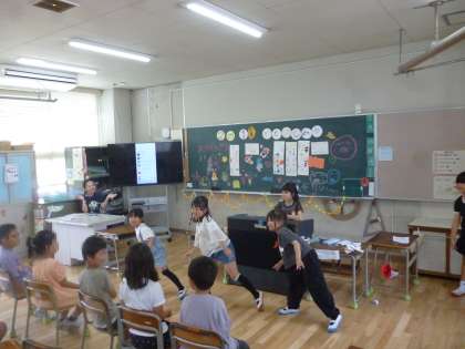 ダンスです。いっしょうけんめいれしゅうしました。みているみんなもたのしくなりました。