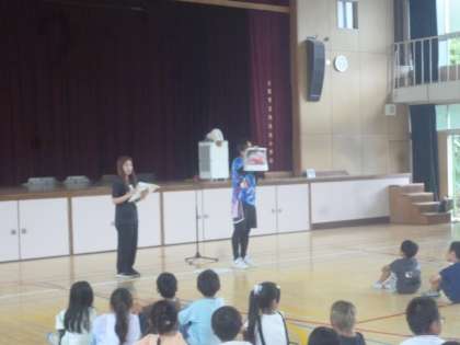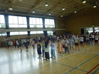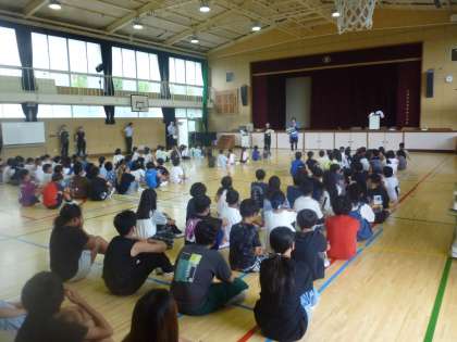 式では、夏休みを安心・安全にすごすために、気をつけることを話しました。最後に、元気に校歌を歌いました。
