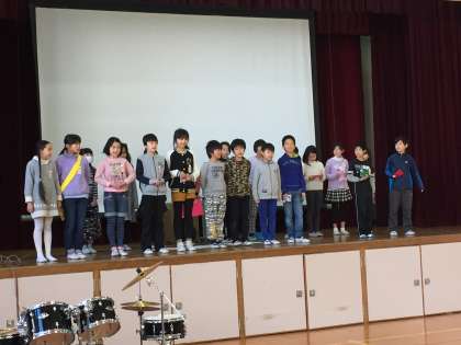 4年生以上が参加するクラブ活動ですが、その活動の成果を全校児童の前で発表会を行いました。これは本年度より実施することにしました。