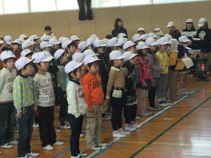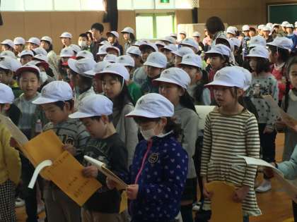 卒業生に贈る歌、今年は「想い出がいっぱい」です。心をこめて、土曜日に歌います。今日は、1年生から5年生で練習をしました。