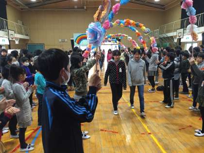 卒業を祝う会を行いました。6年生とすごす最後の集会が華やかに幕を開けました。