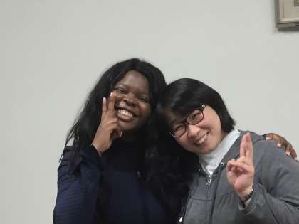 本校でC−NET(Osaka-City,Native English Teacher)として勤務していただきましたスエン先生が、南港南地区に異動されて、新たにShe-Marie Holness先生に高学年の英語学習担当としてお迎えし、南港北中学校の松村先生とごあいさつに来られました。子どもたちには、マリ先生と紹介いたします。