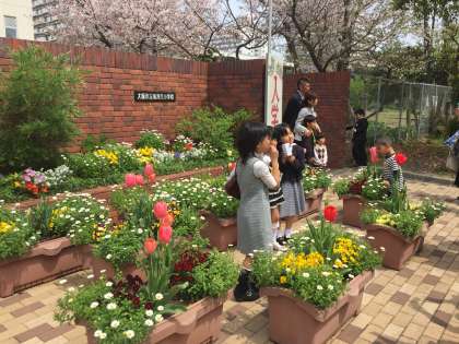 平成28年度入学式を行いました。西原区長、高野、岸本、片山、佐々木市議をはじめ多くのご来賓、保護者のみなさまのご参加をいただきました。子どもたちはどの子も晴れやかな表情で、花々につつまれて南港光小学校の校門をくぐりました。