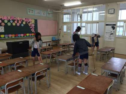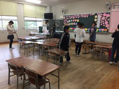 1年生の教室を6年生がきれいに掃除をしています。光小学校は、ずっとそうしてきました。6年生も1年生の時に、当時の6年生のお世話になりました。だから、6年生になると当然のように1年生のお世話をします。これが伝統です。