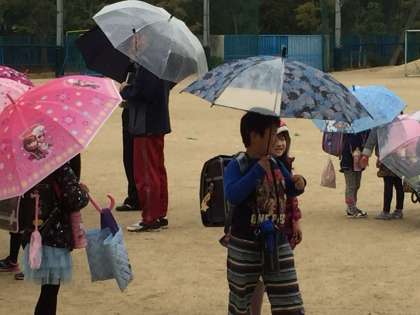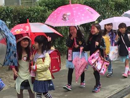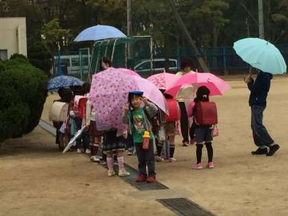 入学してきて、はじめての雨になりました。いきいき教室にいく子、お家に帰る子などに分かれていきました。今年の1年生はいつも笑顔です。