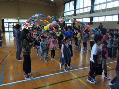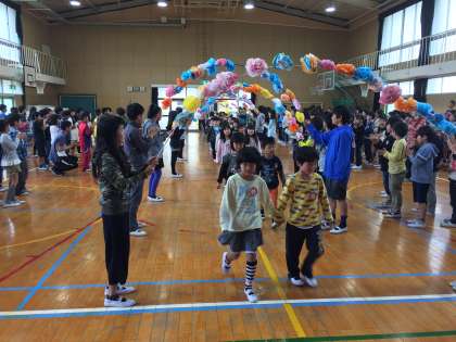 1年生が、花のアーチをくぐって講堂に入ってきました。2年生から6年生がそろって迎えました。小学校生活がこのように始まります。そして、様々な経験をして大きく成長し同じ花のアーチをくぐって、中学校に巣立っていきます。