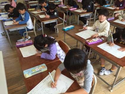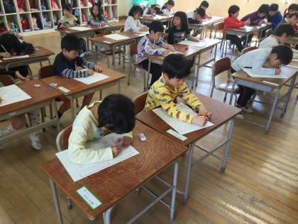 1年生は、えんぴつの持ち方からスタートです。中には、すらすらと字を書いている子もいますが、まず線を引いてみることから始めていきます。