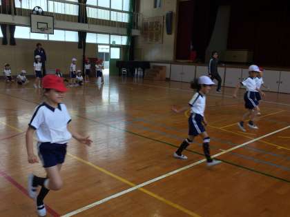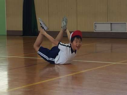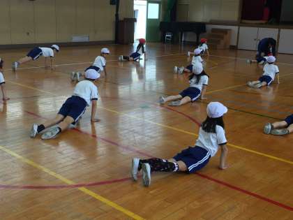 体育では基本的な運動を行い、徐々に体力を育てていこうと思います。柔軟性などは、毎日の積み重ねがとても大切です。