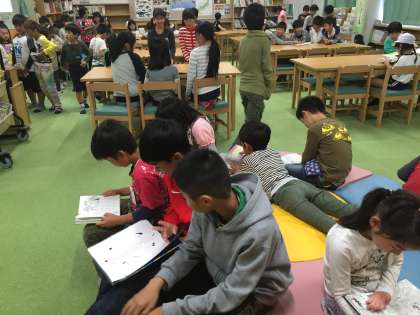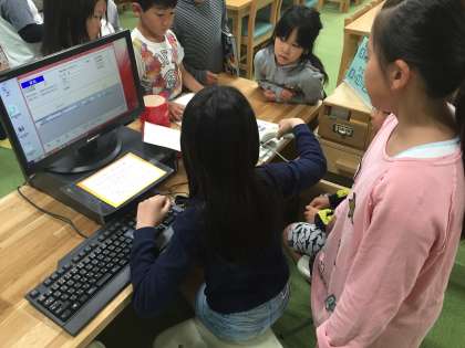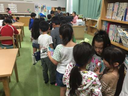 図書委員会が、今日から本の貸出をしています。バーコードへの読み取りは、すべて子どもたちがやります。本を借りたい子の列が、とても長くなってうれしい悲鳴でした。