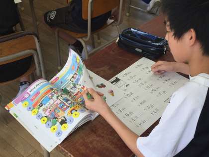 高学年の英語学習は、C−NETのマリ先生との学習以外に、各担任とも進めています。とても楽しそうです。