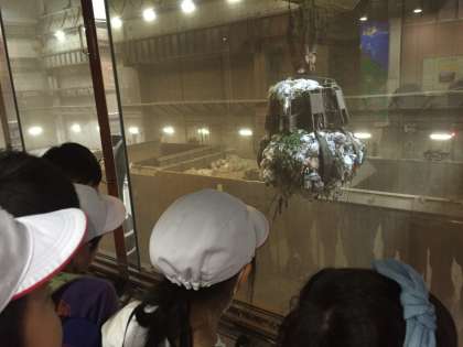 4年生が舞洲工場(ごみ焼却工場)に見学に行きました。大きなクレーンでごみを持ち上げて、焼却炉に投入している様子はとても迫力がありました。舞洲工場は、外観も内部もテーマパークのような楽しさです。