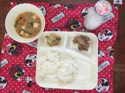 今日は、豚肉のおろし醤油かけ、みそ汁、野菜炒めでした。暑い季節に、おろし醤油が食欲を高めてくれました。