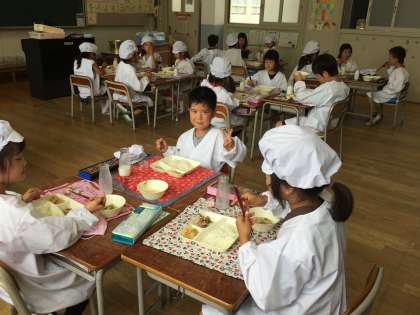 今日の給食は、豚肉の梅風味焼き、切り干し大根の炒め煮、すまし汁でした。豚肉は、ほんのりとした梅の風味で、あまり酸味はなく食べやすかったです。