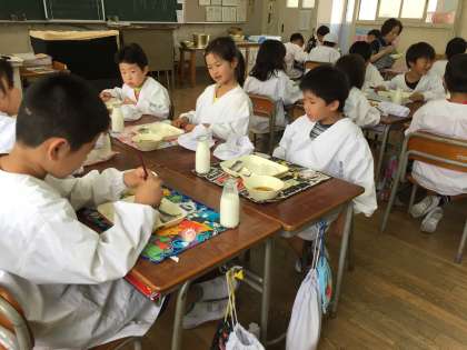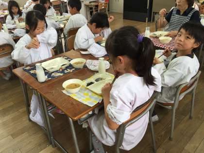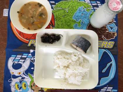 今日の給食は、さごしの塩焼き、牛ひじきそぼろ、みそ汁でした。さごしは、あっさりとした塩焼きで、魚が苦手な子も食べていました。