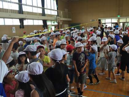 今日の児童集会は、南港光小学校○×クイズでした。その名の通り、○か×かで答えるクイズです。○か×で場所を移動するので、講堂の中はとってもにぎやかでした。